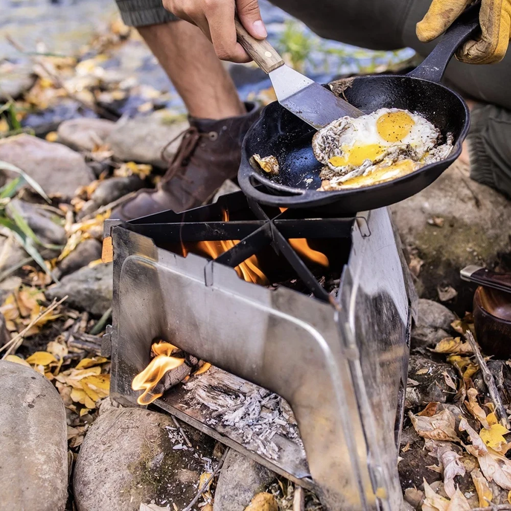 A portable camp stove whenever and wherever you need it. Studier than a backpacking stove, but still light enough to easily transport with you car camping, rafting, or to the park for an afternoon activity with family. Unlike many camp stoves, our Portable Fire Pit was designed to withstand the weight of heavy-duty cookware like cast iron skillets and dutch ovens.