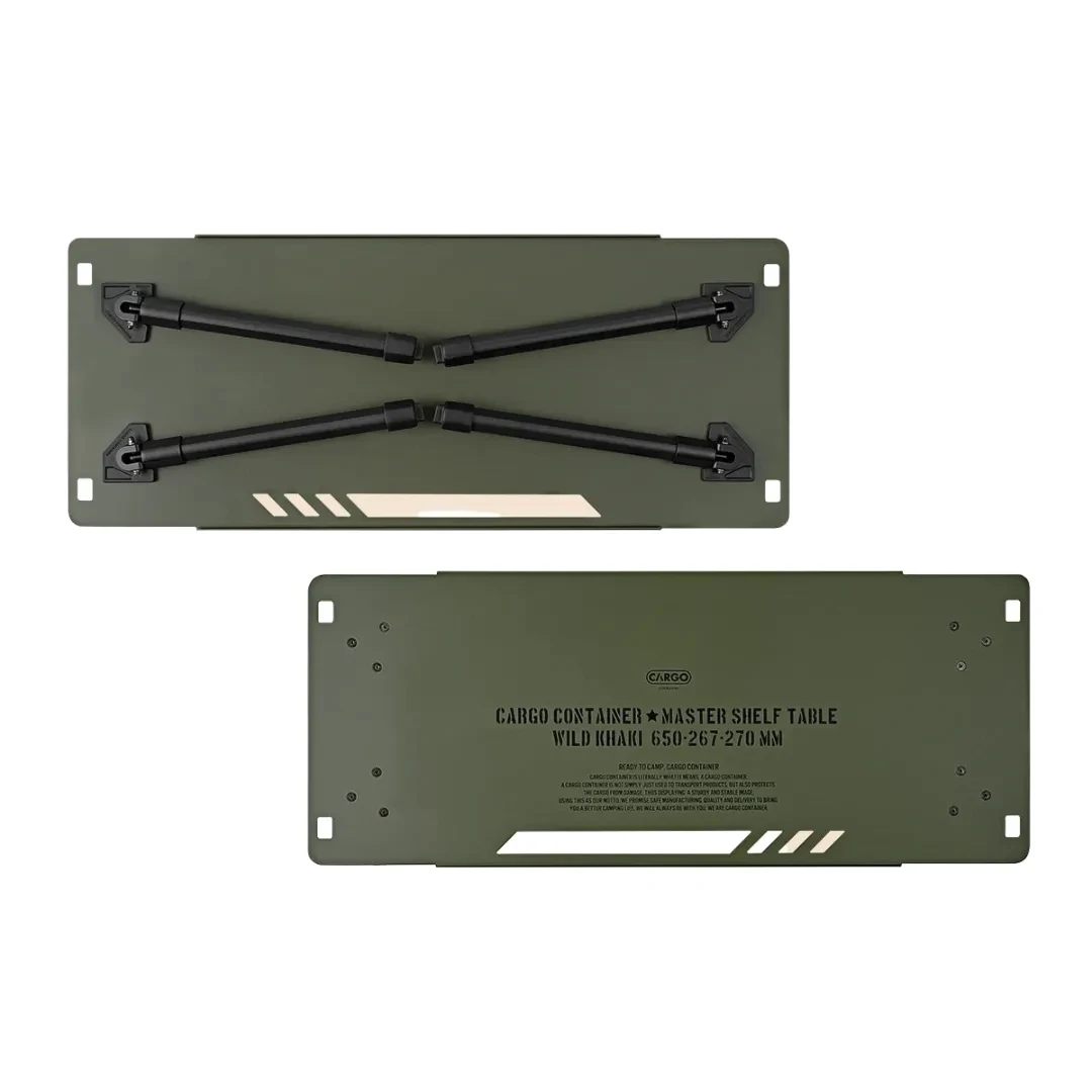 Specialized for camping users, it is designed to be used in various ways depending on the camping user’s style. The set consists of two tables, which can be used as a two-tier shelf when installed vertically, or as a low dining table when used horizontally. To secure the bottom table when using it as a shelf, we have developed our own leg cap. Additionally, the tabletop and legs are made as a single unit, allowing for quick and easy installation and disassembly.