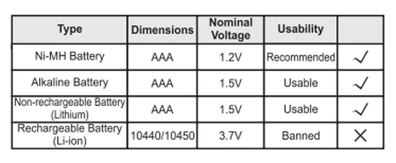 - Low: 8 Lumens (Ni-MH: 14 hours 30 min.; Alkaline: 15 hours)