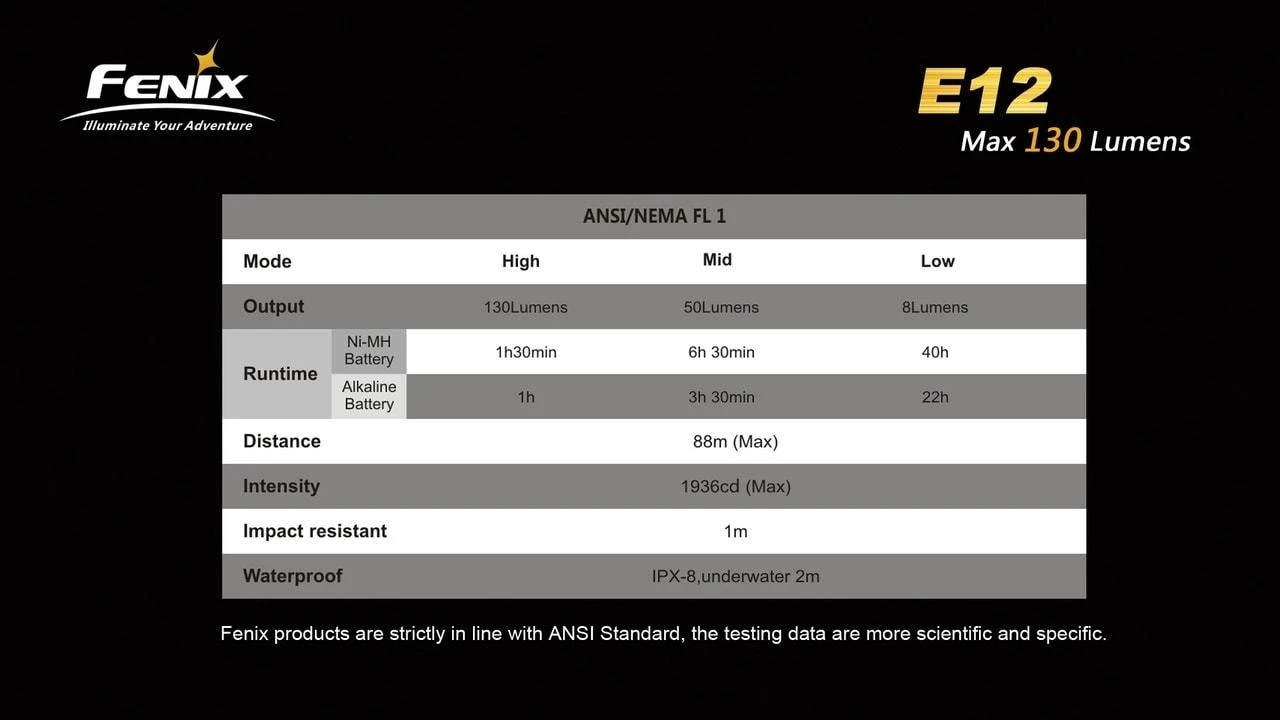 Fenix knew there was a hungry market from compact everyday carry flashlights ever since the release of its popular E11 LED flashlight. Over the years, technology improved and they found it was time to make an upgrade to the E12. This flashlight uses a single AA battery to generate 130 lumens in its highest mode! That’s enough illumination to light up a dark alley, a backcountry trail, or a whole campsite and it fits in the palm of your hand. Unlike other compact flashlights, this LED device doesn’t skimp on features.