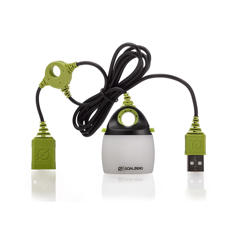 Bright mini USB light with 110 Lumens and collapsible diffuser for lantern or area light. Chainable LED light that pairs perfect with any Goal Zero recharger. Chainable with up to 4 lights. Carabiner included for hanging. Additional colored shades can be purchased to add mood lighting.