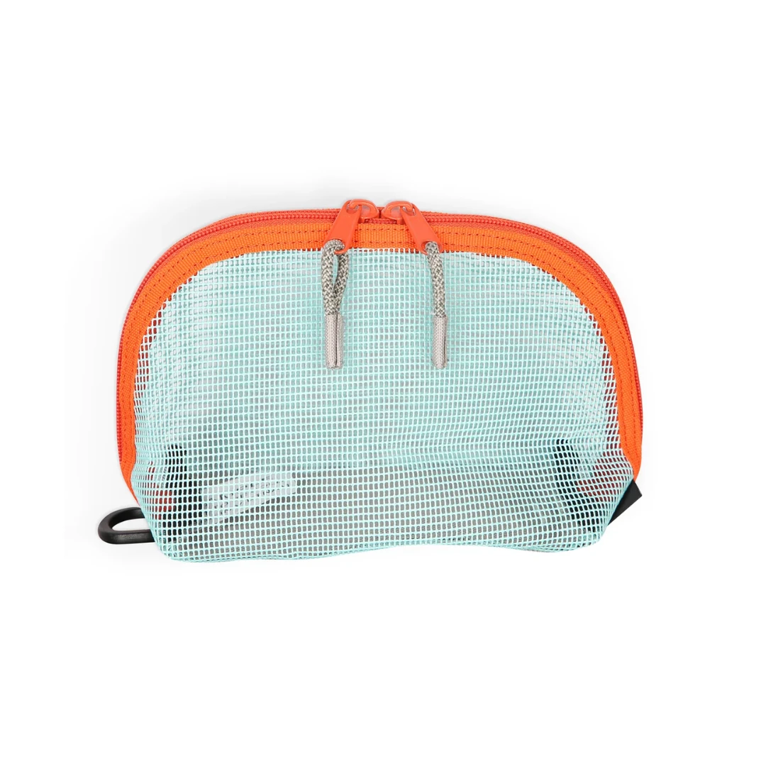 Small accessory pouch, one main compartment with two-way zip closure, pattern webbing hand grip and d -ring to attach other items.