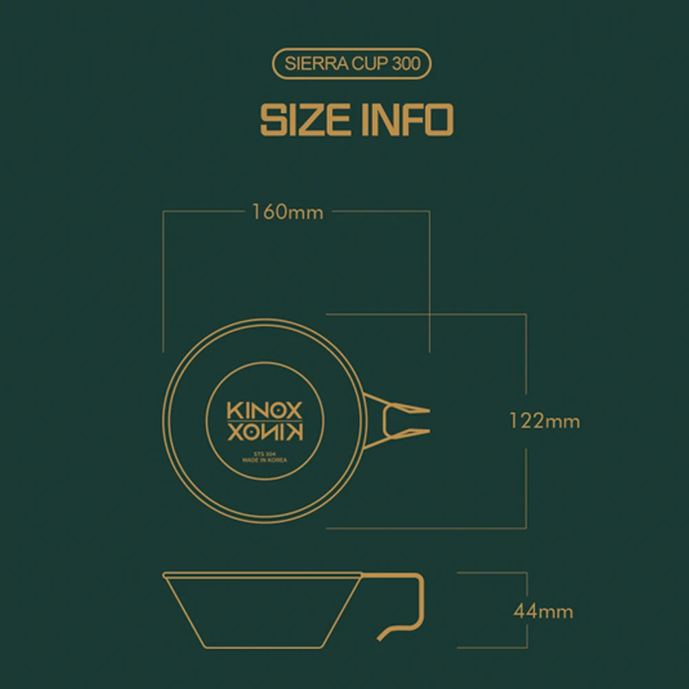 The KINOX Sierra Cup 300, made of STS304 quality stainless steel, ensures durability and safety compared to other materials. Its high-cut handle provides a secure grip, while the notation scale adds convenience for measuring. Finished with a unique sanding method, it boasts a matte textured surface.