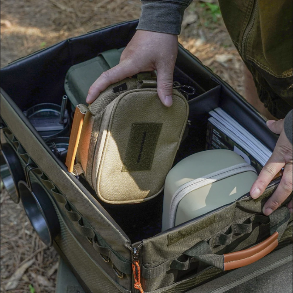 The field cabinet box offers large storage capacity with internal plates applied to all sides, ensuring ease of loading not only from the top but also in an upward direction. This design allows for convenient accessibility even when fully loaded. The additional reinforcement makes the cabinet box more solid and stable, enhancing its durability during loading and unloading. Moreover, the top surface serves a dual purpose, functioning as a stable sub-table suitable for placing cups and small items, adding to its versatility in outdoor settings or on-the-go activities.