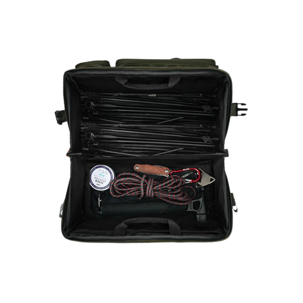 Inside the high-density HD 600D fabric, there’s a PE material plate that allows secure storage of diverse items, including hammers and strings. You can effectively organize your belongings by purpose using the separated interior space and front pocket. This multi-giant tool bag offers ample storage capacity, ensuring a neat arrangement of camping essentials with its divided interior space.