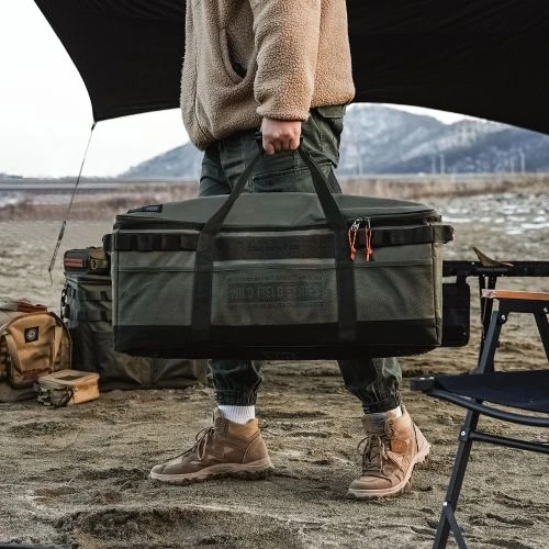 Field multi-pole bag with a wild sensibility In addition to general holding poles, poles for large-sized tents It is a generously sized pole bag that is also good for storage. The pole can be fixed in the bag so that it does not move. Length-adjustable straps are attached to the bottom, so there is no damage. You can safely store poles.