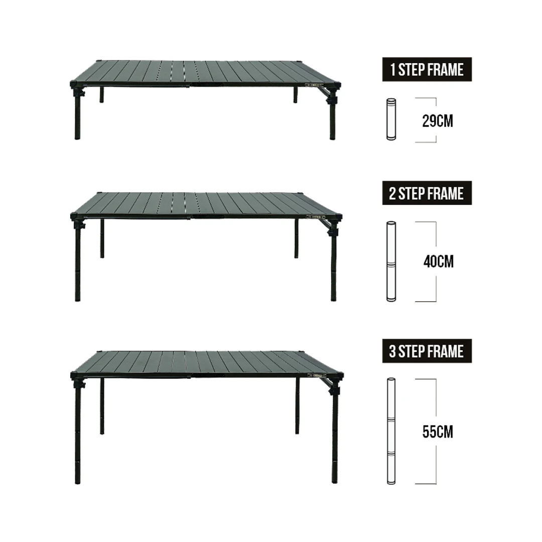 Field Top Table L made of sturdy aluminum The top and frame are separated for compact storage, and the frame combination method to minimize shaking allows for stable use. This is a highly usable camping table that can be adjusted in height up to 3 levels with simple operation.
