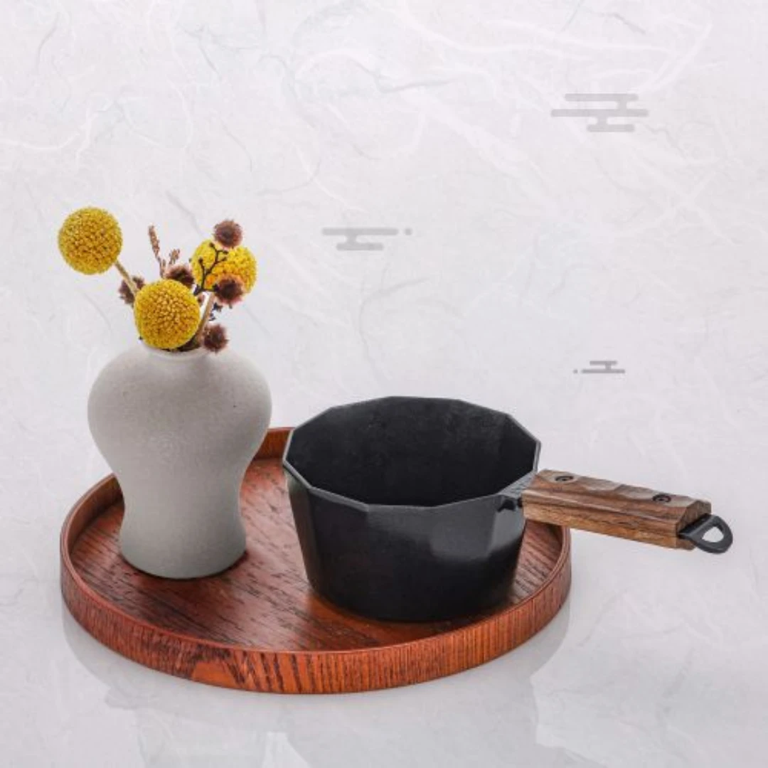 This Korean-style bowl features a unique 12-pronged design and is made from lightweight, durable aluminum. It resists scratches and discoloration, is easy to clean, and stays hygienic with no metal smell. The ceramic coating gives it a smooth, glossy finish. With a 500ml capacity, it’s suitable for drinks or simple cooking. The walnut handle offers a comfortable grip and protects your hand from heat.