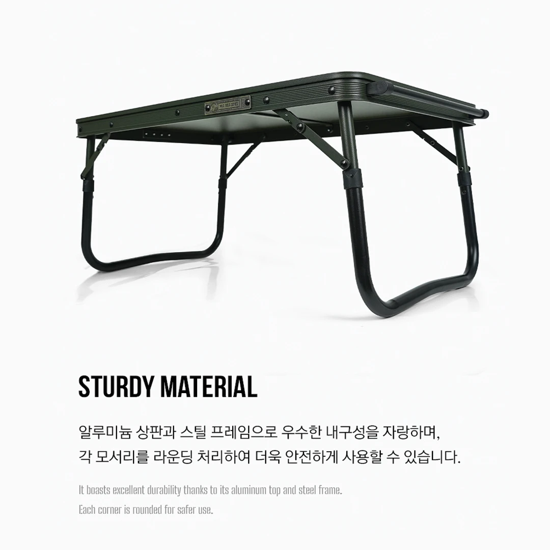 Wild Field Ground Table Mini with a stylish olive khaki color and a top that adds the wild feel of the Field series. This mini camping table is made of aluminum and steel, making it small yet durable and easy to install, making it convenient to use anywhere.