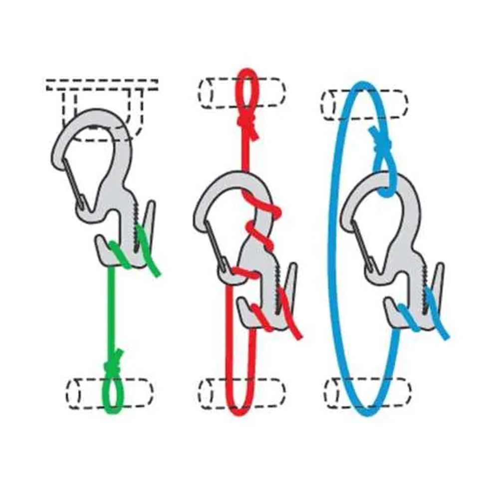 The Nite Ize Figure 9 Carabiner tightens, tensions, and secures ropes without knots. Whether tethering a canoe to your vehicle, anchoring boxes to a dolly, or bundling wood, this carabiner secures large loads quickly and keeps tension where you need it. Loop your rope through its strategically designed prongs, pull it tight, and it stays that way. A smart alternative to complicated cam-locking tensioning devices and bungee cords, the Figure 9 Carabiner also controls the release of high tension, avoiding sudden and dangerous unloading.