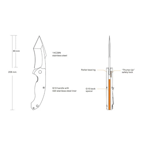 - Blade Material: 14C28N stainless steel (58~60 HRC)