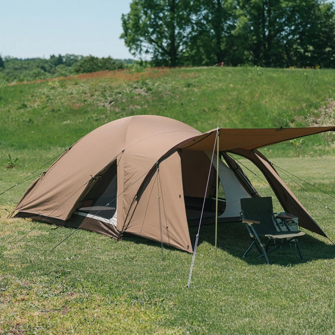 Introducing the Amenity Dome M, a top-selling tent renowned for its TC (polyester cotton) fly sheet that regulates moisture, blocks light, and enhances breathability. Treated with a high-performance mold-resistant coating, it minimizes mold growth while maintaining durability against sparks. The newly added side opening panel ensures all-around ventilation and easy access to essentials. Ideal for year-round use, it addresses common camping concerns like early morning light, summer humidity, and temperature fluctuations, ensuring comfort in any season.