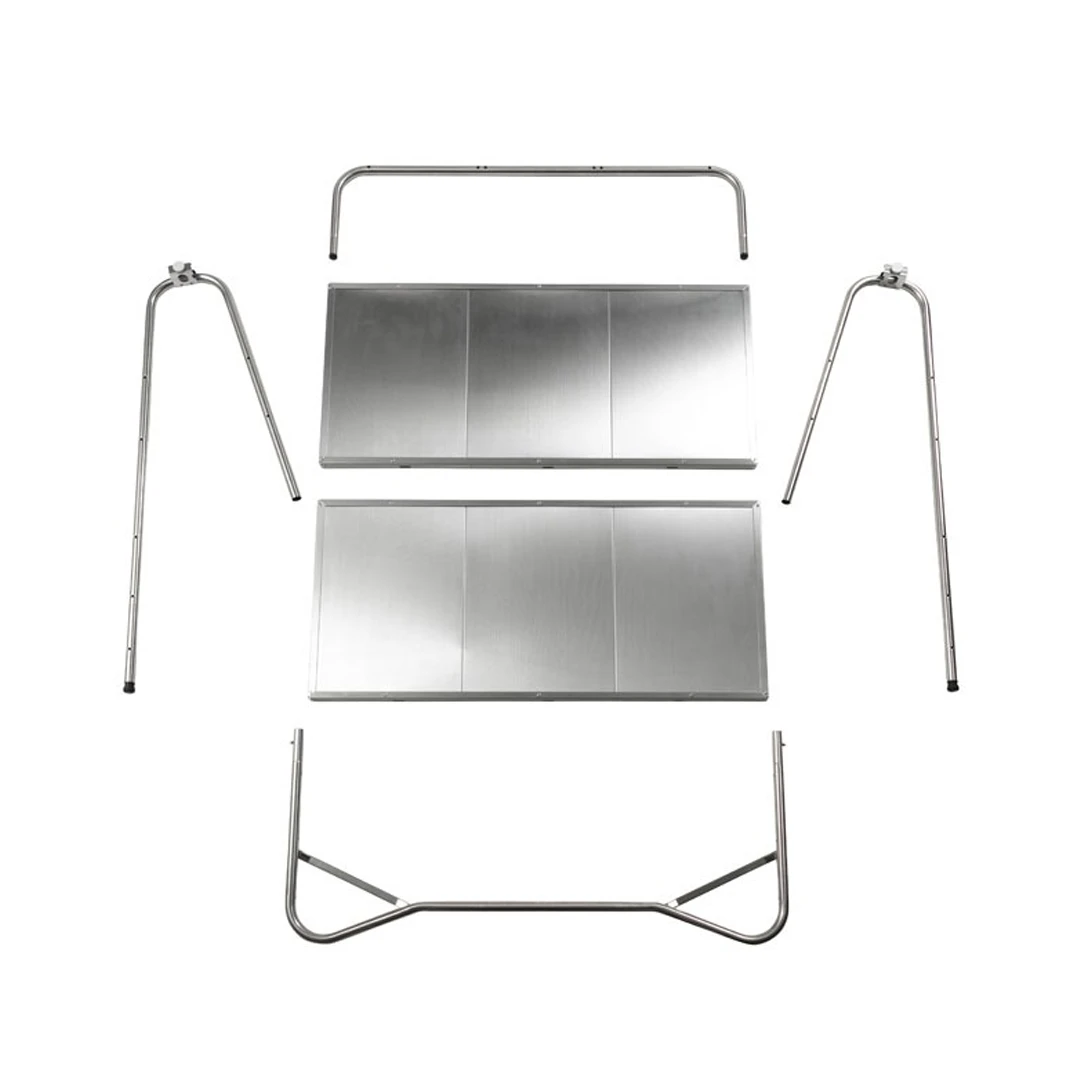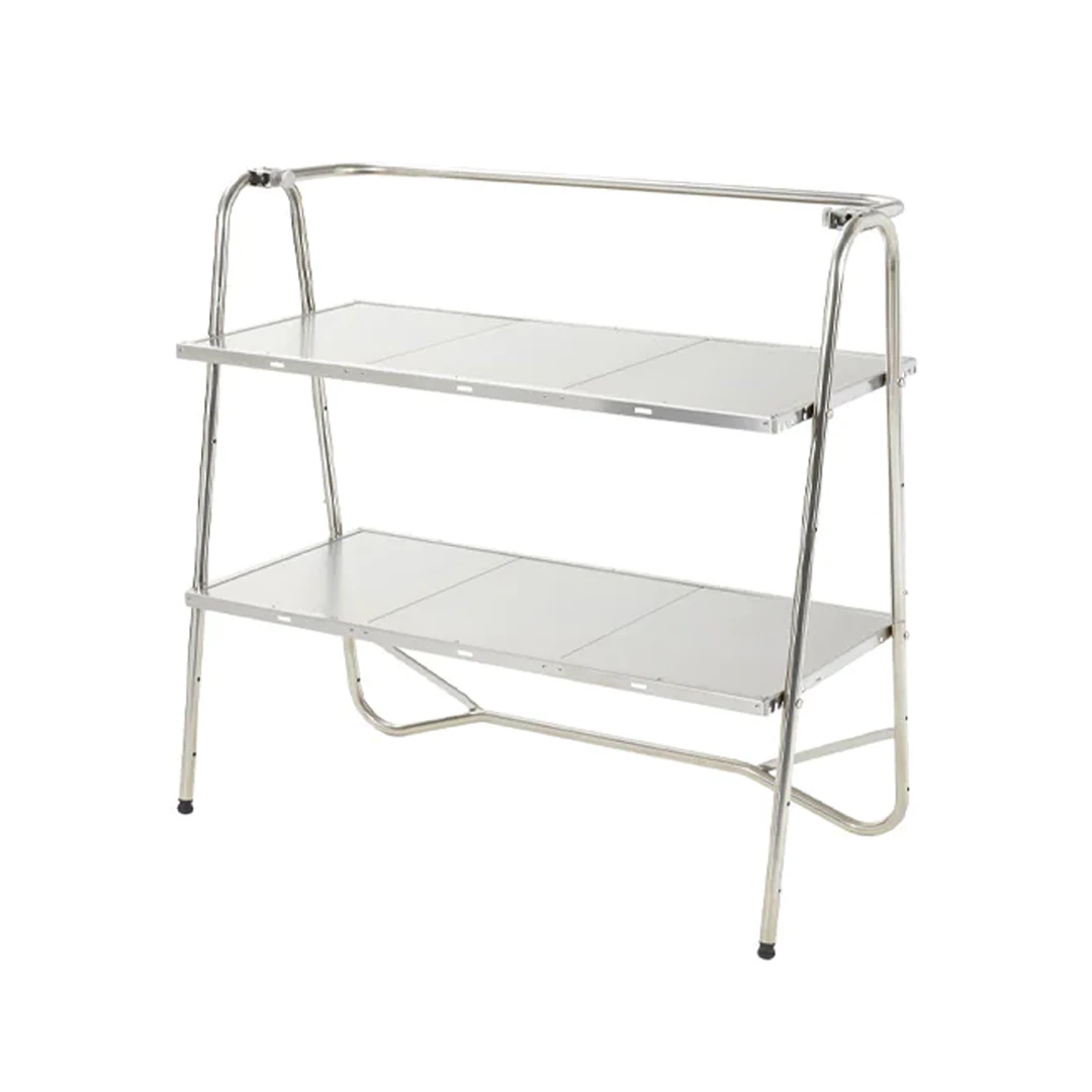 The Stainless Steel Kitchen Table is a Japanese-designed, sturdy modular shelf. Use it for additional storage at home or in your campsite. The Stainless Steel Kitchen Table features multi-level shelving, system hanger and tabletop that seamlessly integrates with the Iron Grill Table System. When not in use, the Stainless Steel Kitchen Table breaks down into several pieces for compact storage. Pair it with the IGT Four Unit Standing Set for an expansive and creative outdoor camp kitchen.