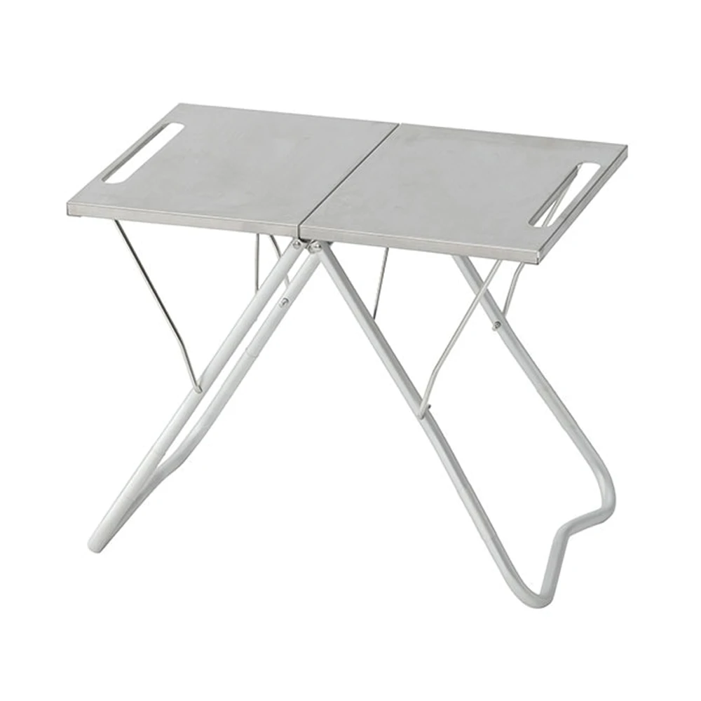 Introducing “Takibi My Table” – a durable and essential side table for bonfire gatherings. The upgraded version ensures safety and functionality. The stainless steel top plate is heat-resistant and sturdy, perfect for holding hot cookware like a Dutch oven. The side hanging bar allows for hanging Sierra cups, while adding a stainless steel tray unit transforms the lower shelf into a convenient surface for drinks and items, protecting them from flying sparks.
