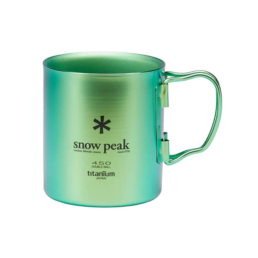 The Ti-Double 450 Anodized Mug is made of Japanese titanium utilizing a craftsmanship manufacturing process. Durable and ultralight, the Ti-Double 450 is ideal for daily use and camping sets. The mug’s double-wall insulation keeps beverages warm or cool. The bright green anodized version adds a pop of color to Snow Peak’s premium titanium qualities. Pair the Ti-Double 450 Anodized Mug with the Titanium Spork or 450ml Silicone Lid.